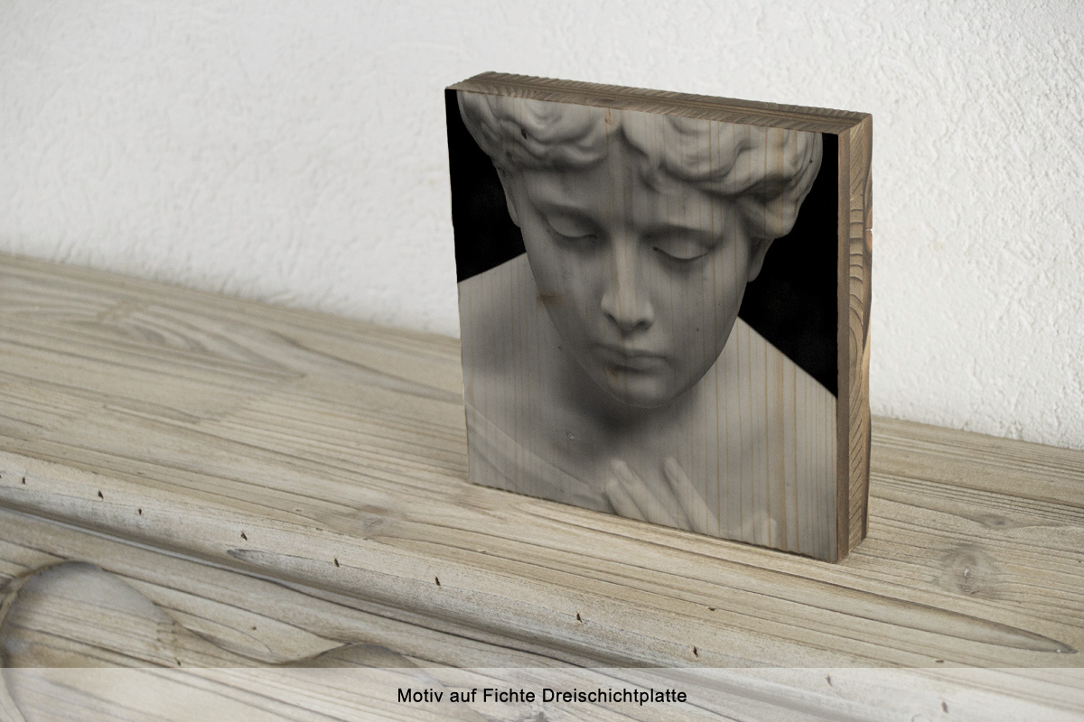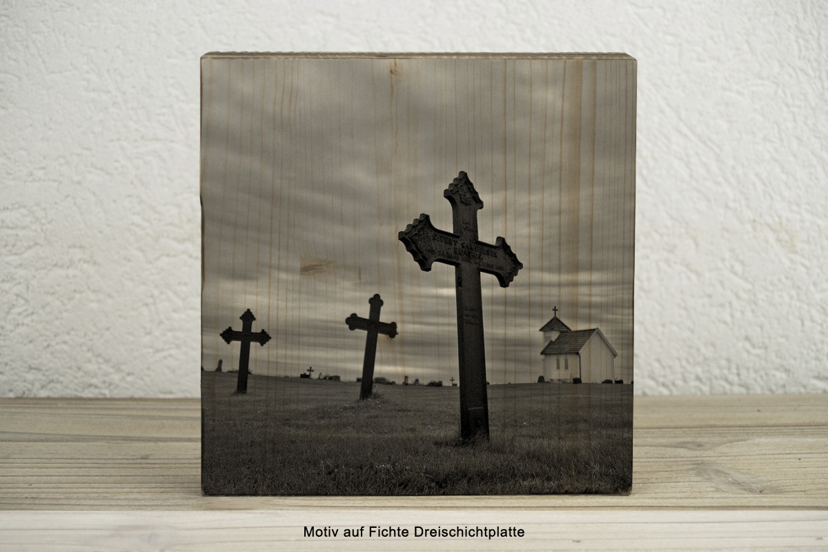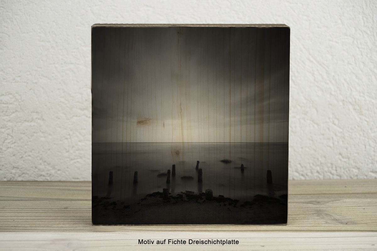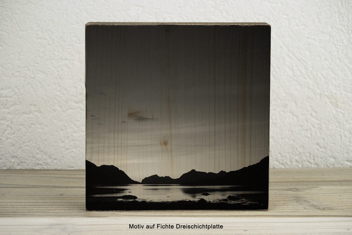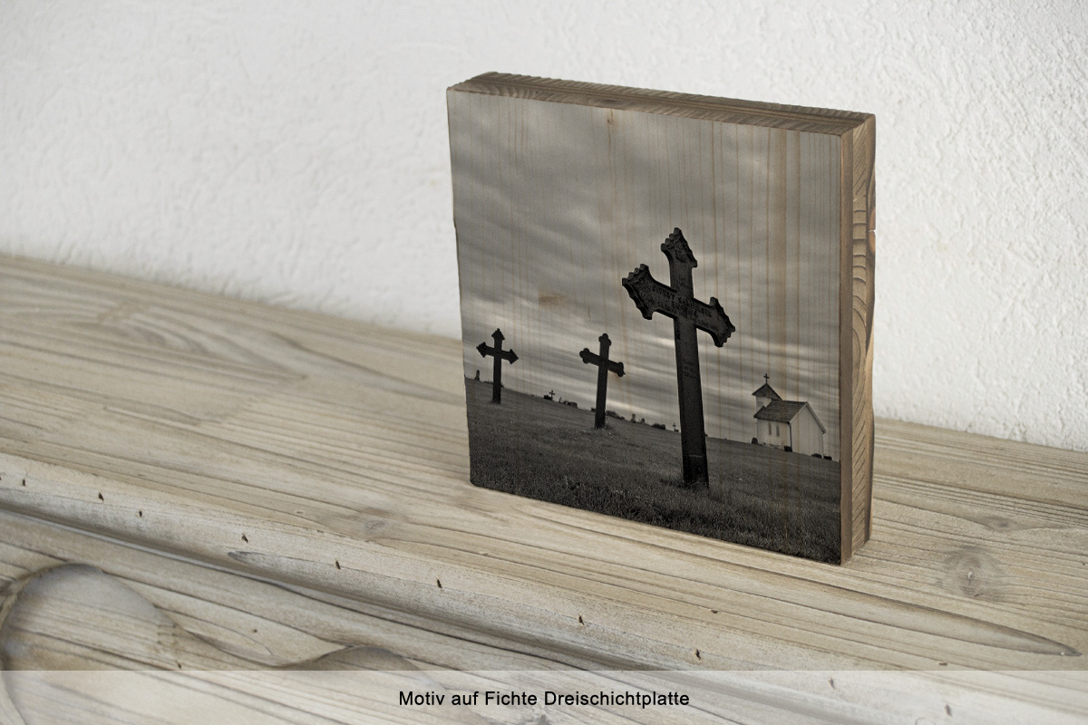 Die drei Motive werden per Hand auf das Holz (Fichte Dreischichtplatte) gebracht und die Ränder des Holzes geflammt. So erhält jedes Bild einen einzigartigen Vintage-Look. Die Struktur des Holzes ist zudem sichtbar.