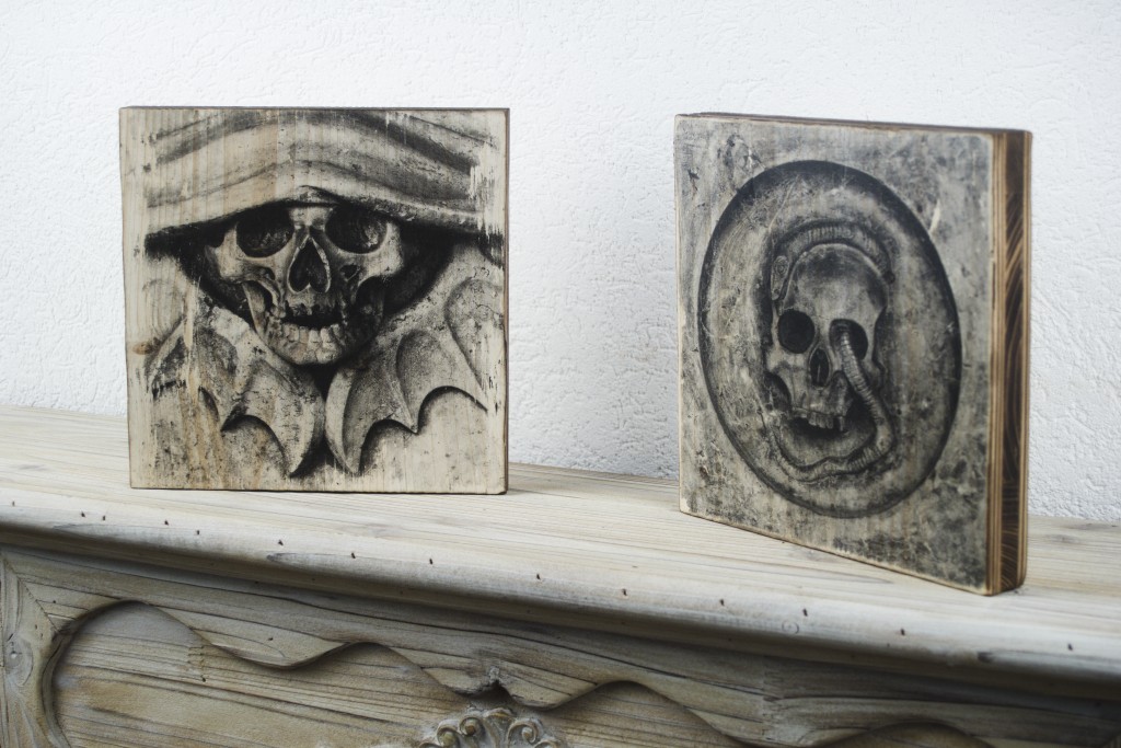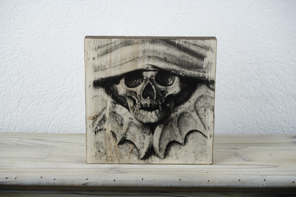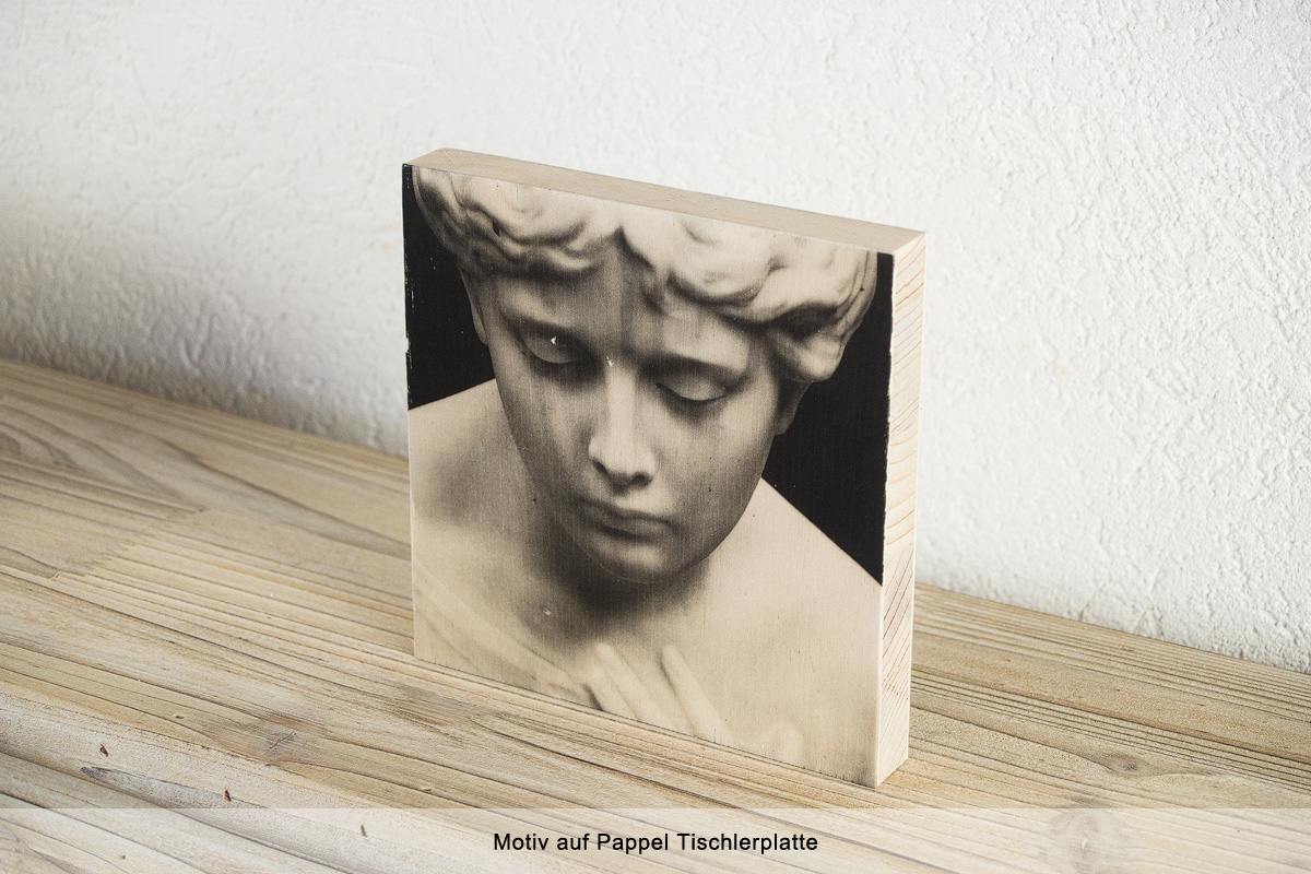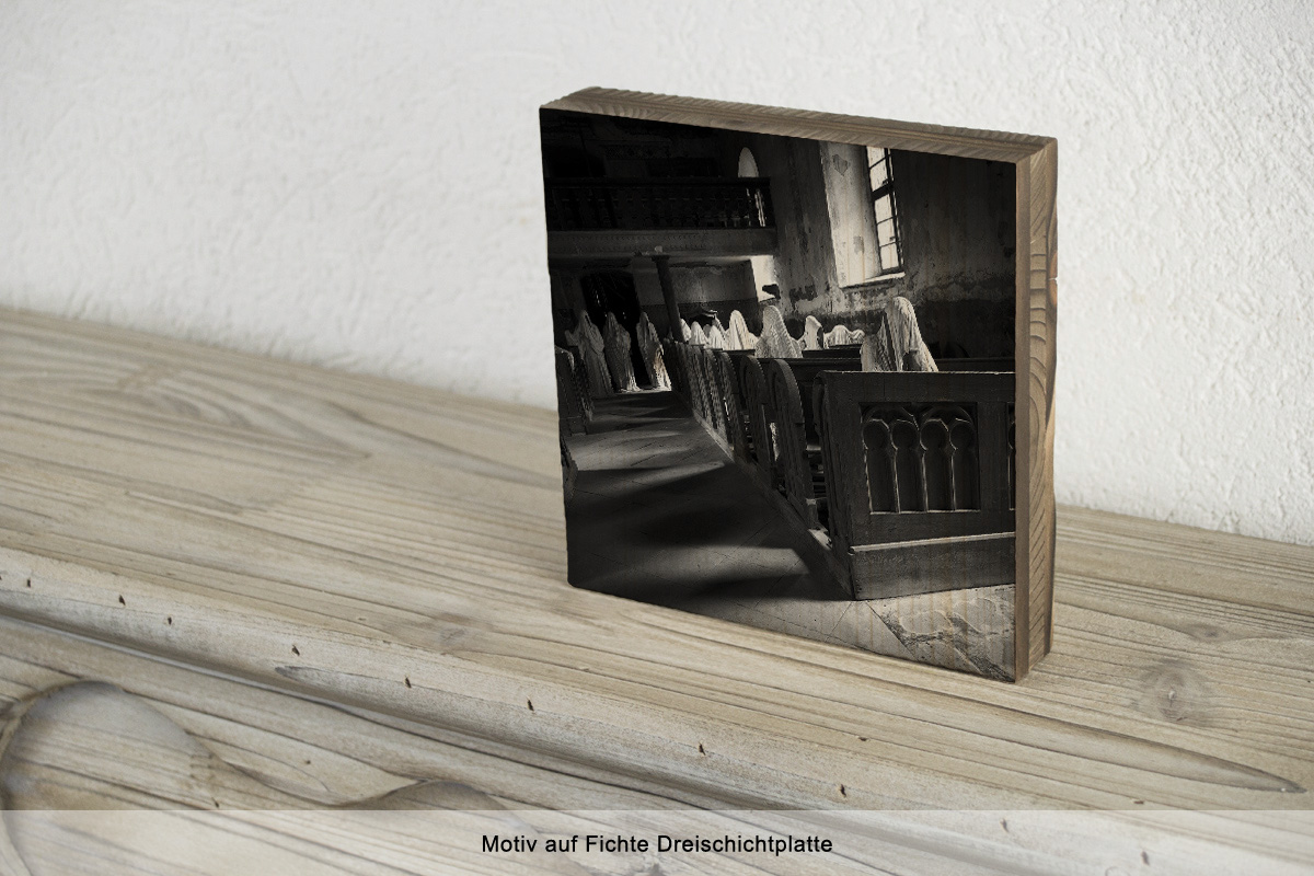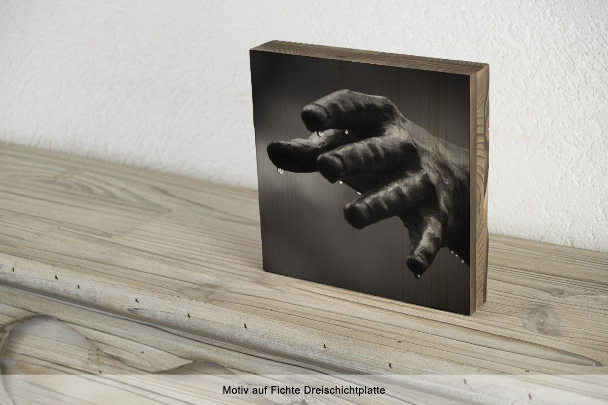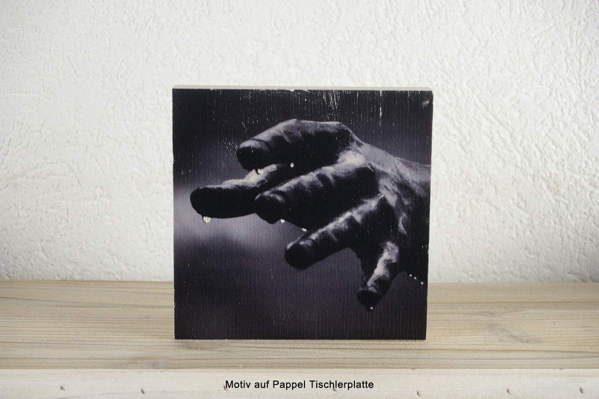 Die drei Motive werden per Hand auf das Holz (Fichte Dreischichtplatte) gebracht und die Ränder des Holzes geflammt. So erhält jedes Bild einen einzigartigen Vintage-Look. Die Struktur des Holzes ist zudem sichtbar.